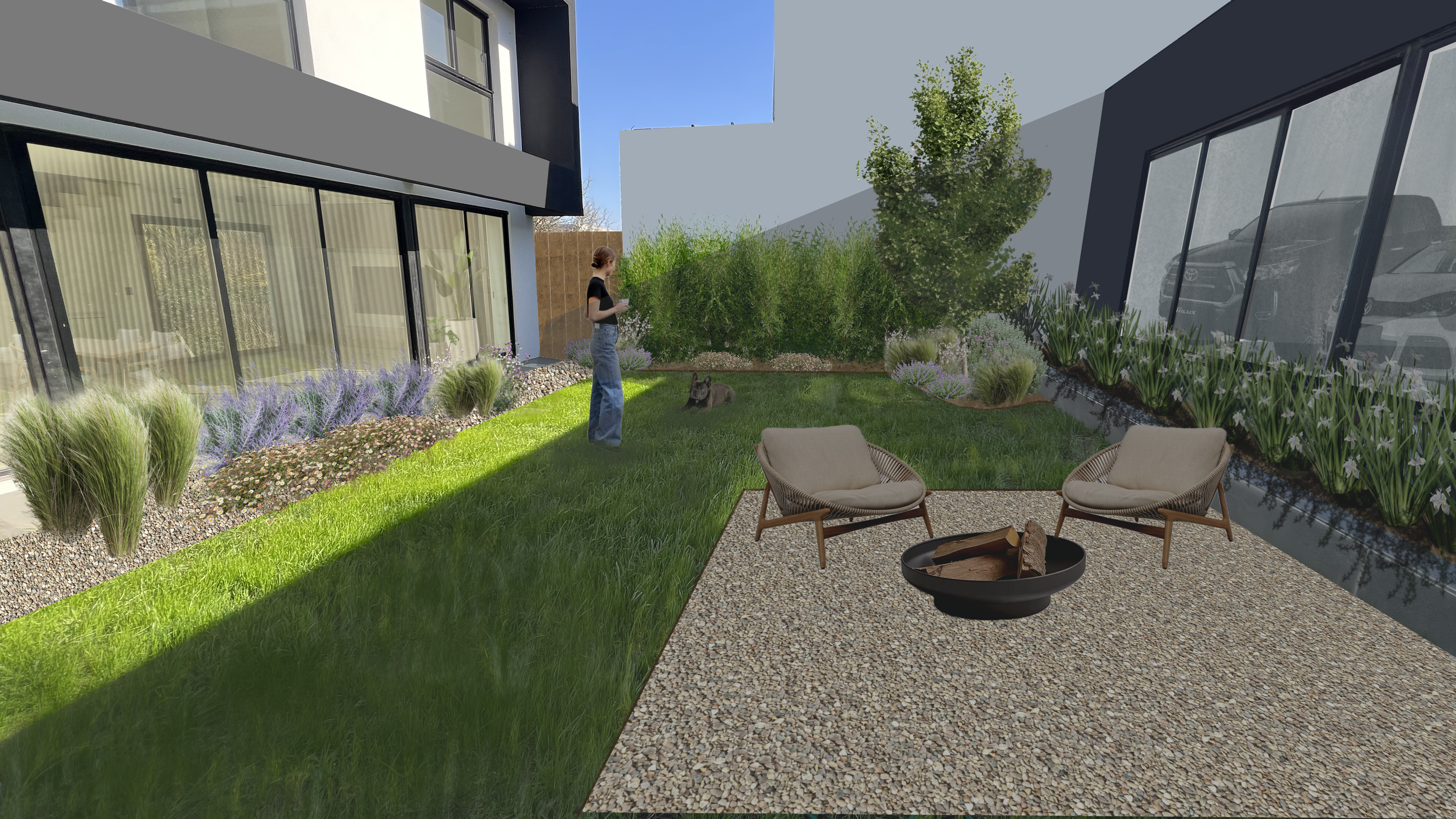 During the initial consultation, the client expressed the desire to create a dog-friendly outdoor space suitable for their small pet, while also future-proofing the garden for family oriented space.